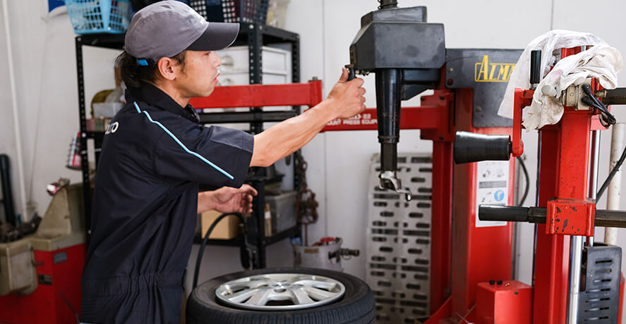 安全で快適なカーライフには、適切なタイヤのメンテナンスが必要不可欠です。当店では、タイヤチェックから見積・交換までスピーディーに対応いたします。空気圧点検、タイヤ溝チェック等、お気軽にご用命ください。